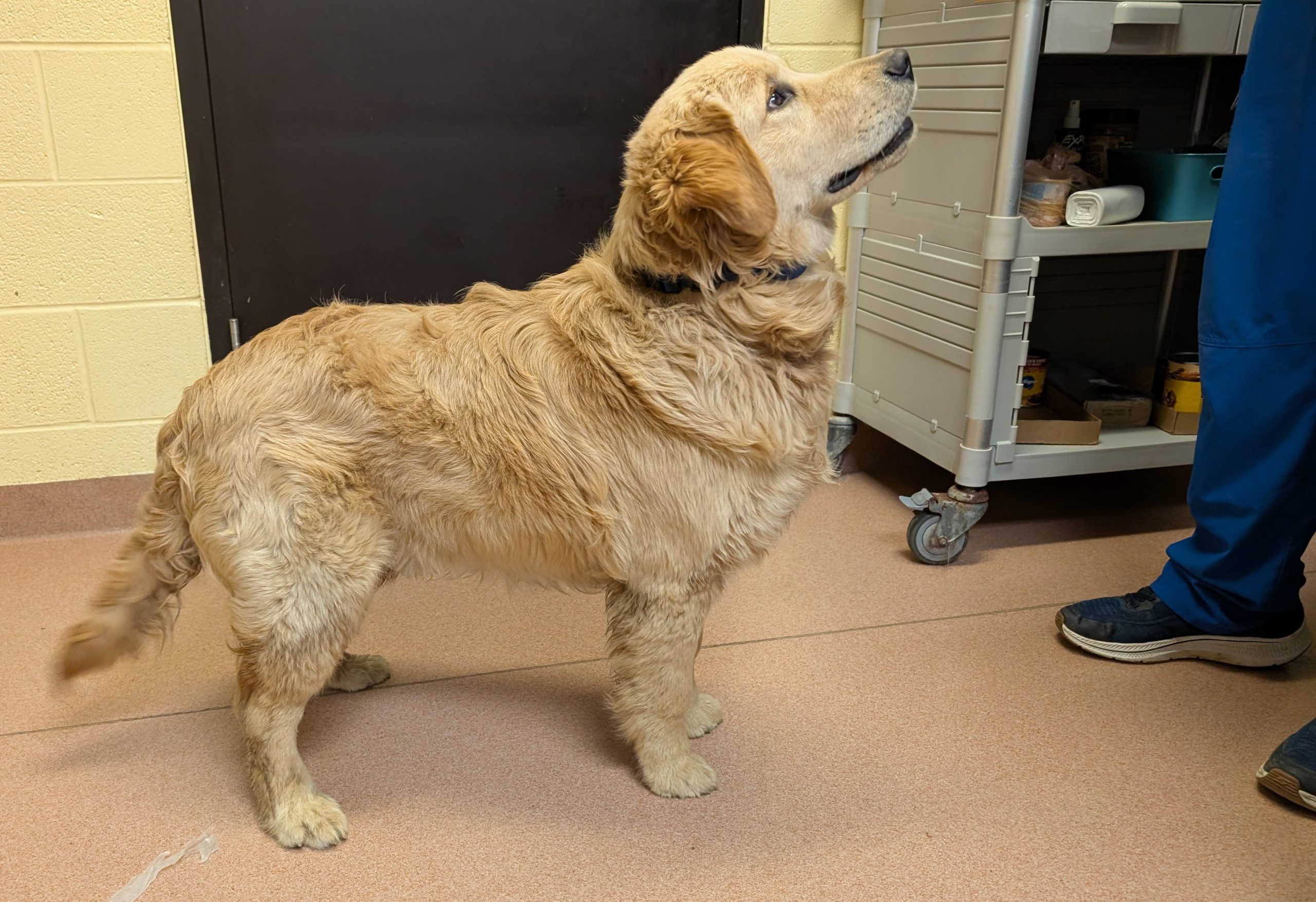 Lucas was found as a stray. He appears to be a purebred Golden Retriever who is 10 months old years old and weighs ~64 lbs. He is micro-chipped, neutered, heart-worm negative, crate trained, and up to date on his vaccines. He keeps his kennel clean, loves to play and mostly he loves belly rubs! He is super friendly.