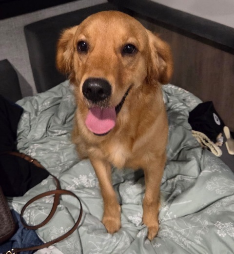 Mabel is a small Golden, approximately 16 months old, (birthday May 4, 2024) current on shots, heartworm prevention, crate trained and weighs approximately 42 lbs. Mabel is house trained, loves walks and knows some commands. She is good with other dogs and cats.