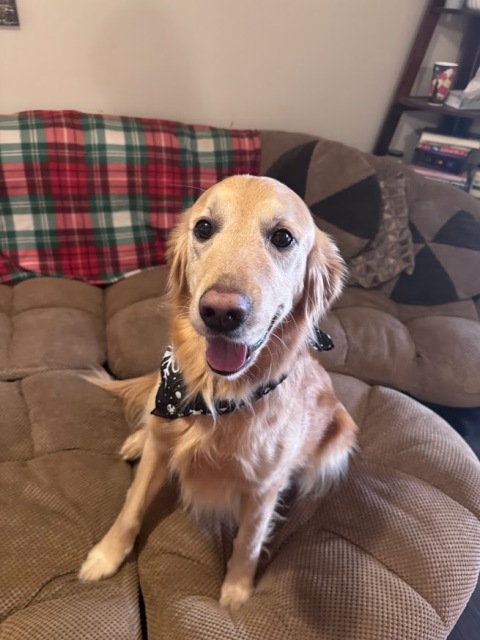 Nash is a purebred golden who is 6 years old. He's house trained, crate trained, and likes to swim. Good with children, dogs and cats.
